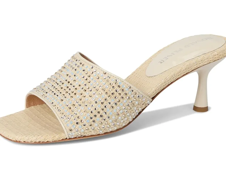 - Step into relaxed sophistication with the Donald Pliner® Rikki slide sandal, designed with a beaded woven raffia upper and a soft square toe. The sculpted mid-heel offers just the right amount of lift, while the memory foam padded insole ensures lasting comfort. Whether dressing up or down, this sandal delivers style with ease.