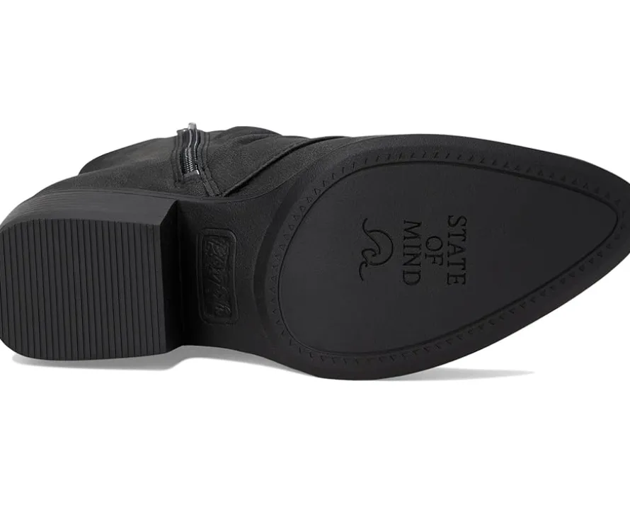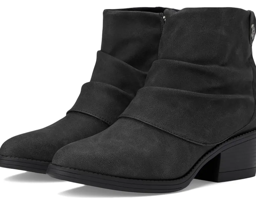 - Stay right on trend in the Blowfish® Malibu Riley Booties. Features include a faux suede or faux leather upper with slouch silhouette and branded metal stud detail at the ankle.