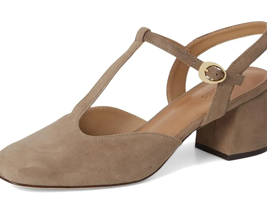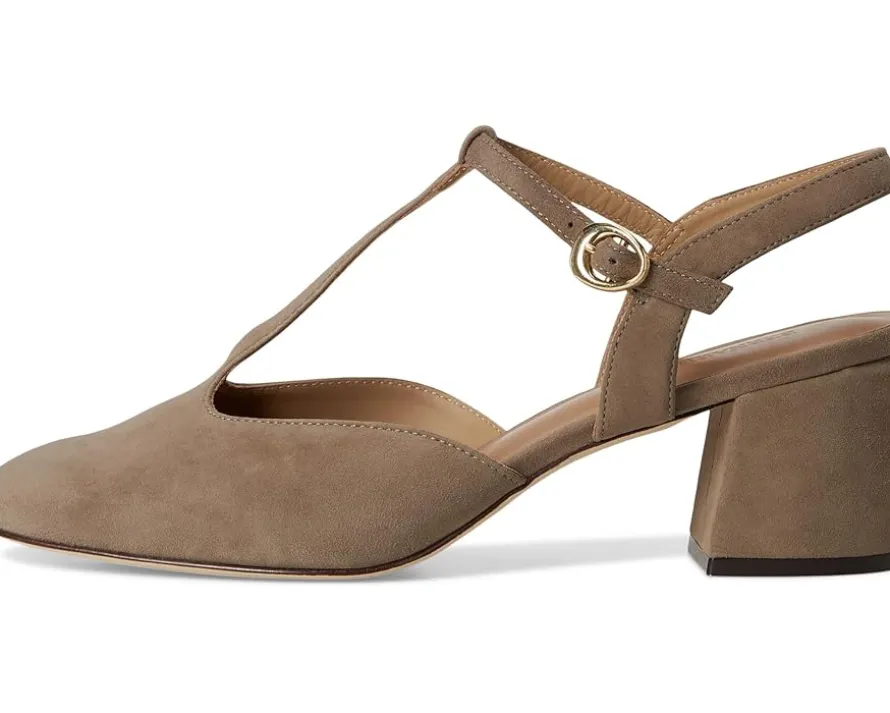 - The Bernardo® Romi is designed to elevate your everyday style with its classic T-strap silhouette and a secure buckle closure. This pump is crafted from supple leather and set on a block heel for stable, all-day wear. The square toe adds a modern edge, while the leather insole and outsole ensure a luxurious feel with every step.