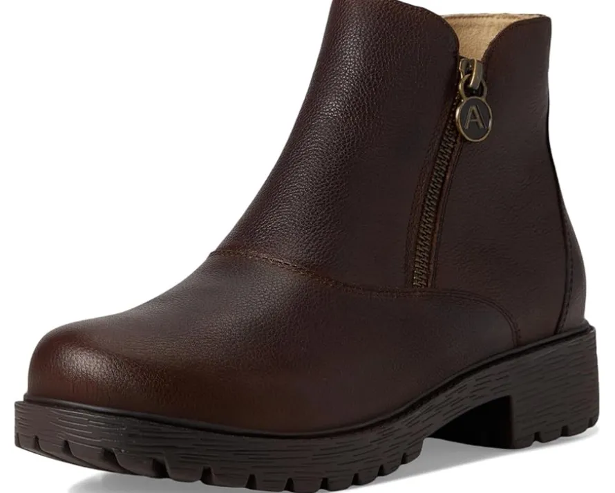 - Step boldly in the Alegria® Rorie ankle bootie set on a slip-resistant luxe lug outsole. It features double zippers for easy on-and-off. Inside, there’s a suede-lined removable footbed made of polyurethane, cork, and memory foam.