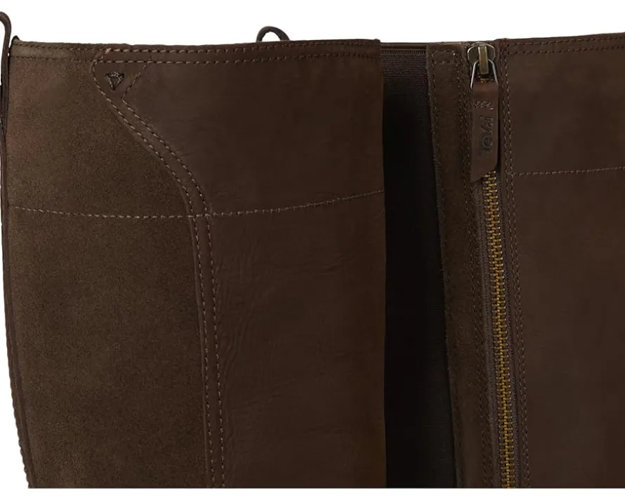 - Crafted for the bold and modern women, the Teva® ROWENA TALL boots are wardrobe essentials. Made from leather upper, fabric lining, and polyurethane insole, this pair of boots features round toe, knee-high silhouette, zippered side closure, elastic gore stretches to provide a great fit, and Teva MAX-COMF insole technology that delivers long-lasting, enhanced support via a cushy, memory foam topsole, a layer of durable foam and a footbed cover made from recycled content for game-changing comfort.