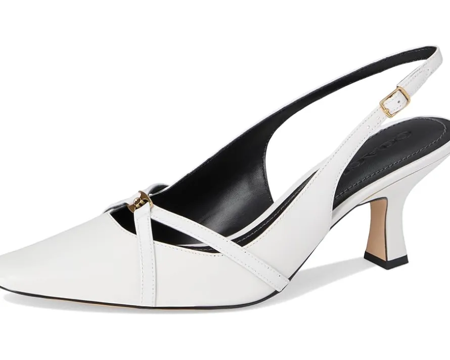 - A touch of timeless: The COACH® Rowyn Slingback – experience effortless sophistication. Crafted with a luxurious leather upper and outsole, complemented by a sleek faux leather lining and insole, these slingbacks redefine chic. The square toe design offers modern flair, while the kitten heel delivers all-day wearability. A secure ankle buckle closure ensures a tailored fit, making these the perfect companion for everything from office meetings to evening soirées.