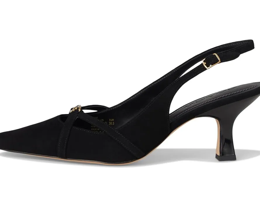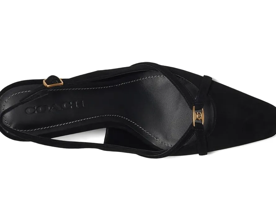 - A touch of timeless: The COACH® Rowyn Slingback – experience effortless sophistication. Crafted with a luxurious leather upper and outsole, complemented by a sleek faux leather lining and insole, these slingbacks redefine chic. The square toe design offers modern flair, while the kitten heel delivers all-day wearability. A secure ankle buckle closure ensures a tailored fit, making these the perfect companion for everything from office meetings to evening soirées.