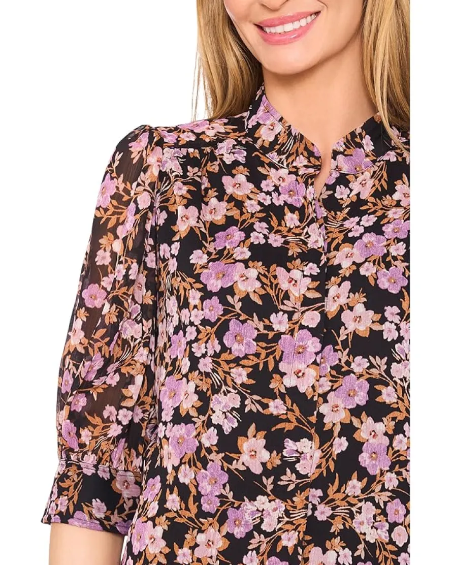 - Sleek yet sophisticated, this blouse features subtle ruching on the sleeves and a hidden placket for a seamless look. Its versatile design effortlessly pairs with both tailored trousers and casual denim.