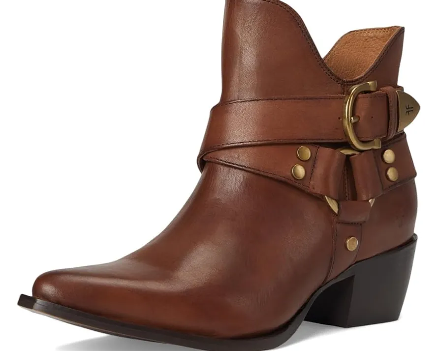 - Make a bold statement donning the confident and free-spirited Frye® Sacha Multi Strap Bootie. Add character and authenticity to your footwear collection with the vintage leather and suede options, and transition comfortably from day to night with the chunky block heel. This ankle-bootie features multiple straps and buckle harness accents. Choose between warm and earthy tones to pair these booties with a boho maxi dress for a whimsical ensemble, or opt for a denim pencil skirt to channel urban sophistication.