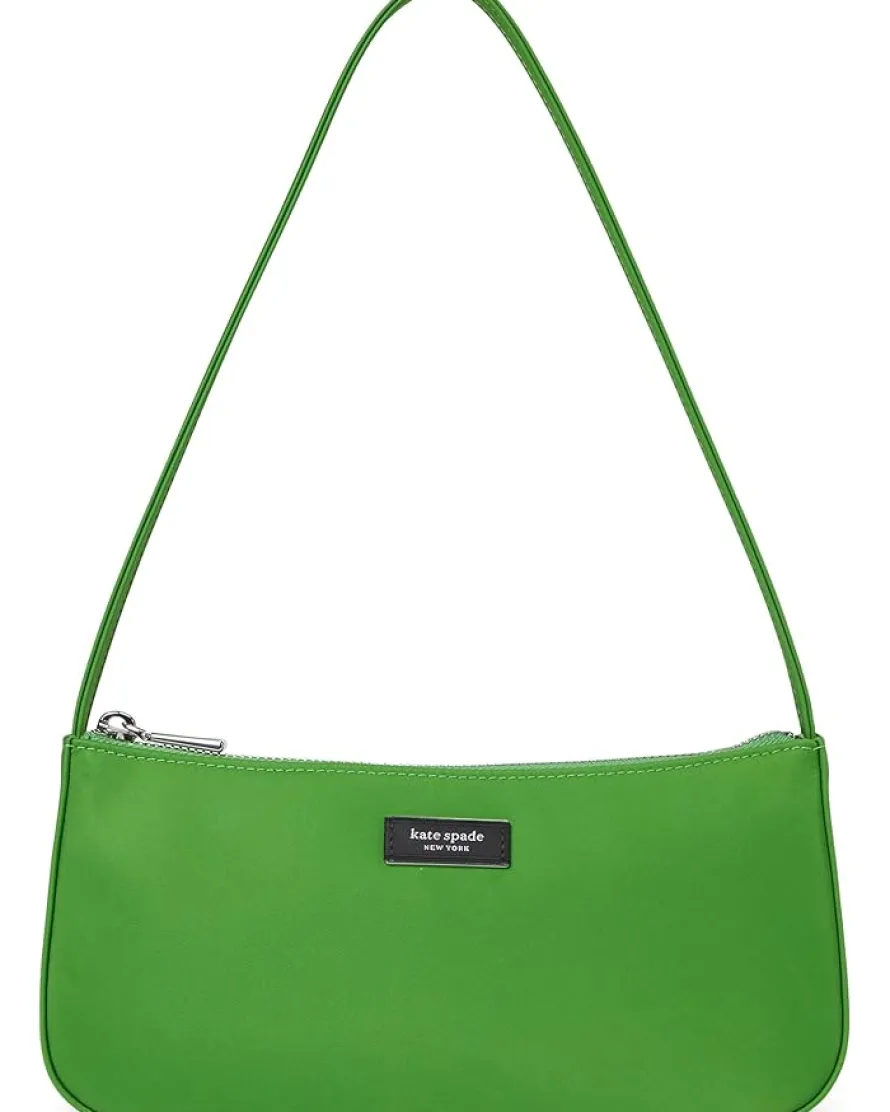 - Stay chic and organized carrying the Kate Spade New York® Sam Icon Ksnyl Shoulder Bag. This sleek bag is crafted from durable nylon construction, making it lightweight and perfect for everyday use. The adjustable shoulder strap ensures a comfortable fit, while the zippered top closure keeps your essentials secure.
