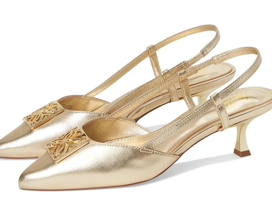 - Step out with a gleaming shimmer wearing the Lilly Pulitzer® Schuyler Kitten Heel Slingback. Featuring an angled kitten heel and a sophisticated metal logo detail, the footwear has LP Plush padded footbed, pointy toe shape and leather upper construction. With a convenient slip-on design and a gored slingback strap, these sandals are perfect for making a statement wherever you go.