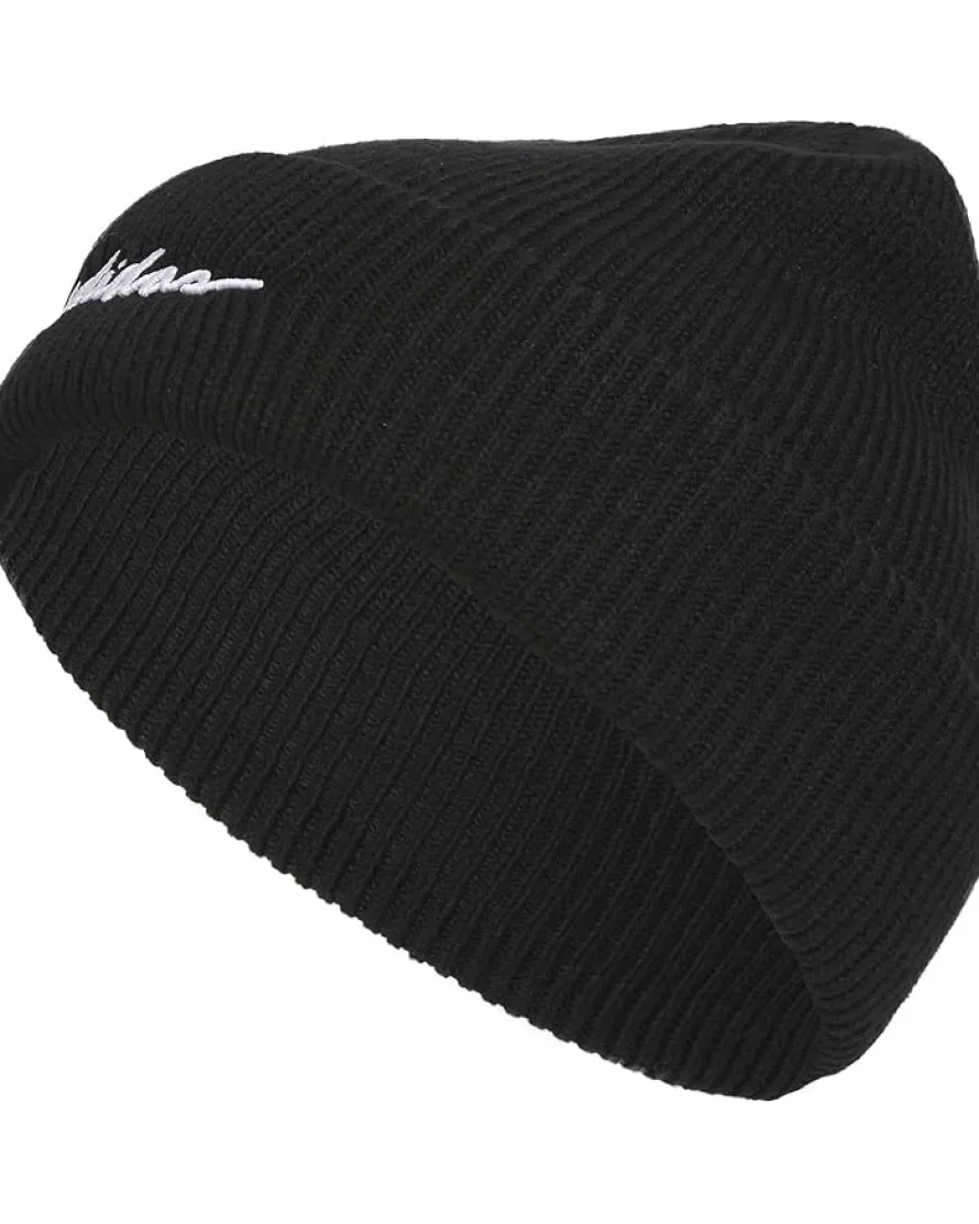 - Complete your look by accessorizing with the classy adidas® Script Fold Beanie. The fold-up cuff is embroidered with the adidas® logo so there’s no mistaking its sporty heritage. The beanie features a ribbed knit constriction with a 3 in. cuff height and raised embroidery brand logo for effortless style.