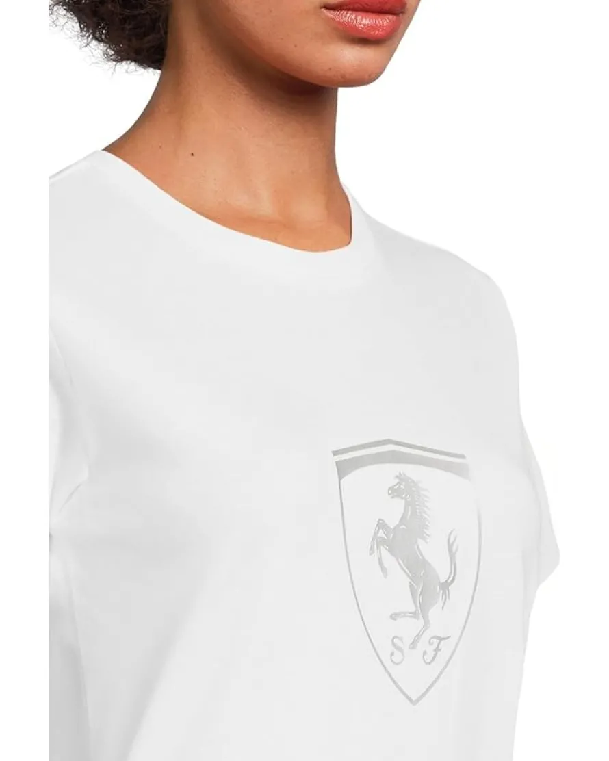- Show your passion for racing with this relaxed fit PUMA® Scuderia Ferrari Tonal Shield T-shirt, blending PUMA’s athletic style with the prestige of Scuderia Ferrari. It is styled with short sleeves, a crew neckline, and a straight hem. Crafted from premium fabric for maximum comfort and durability, this crew-neck tee offers a classic fit that’s neither too tight nor too loose. This casual tee is made with at least 20% recycled material. Easy to care for and perfect for everyday wear, it blends athletic style with the prestige of Scuderia Ferrari.