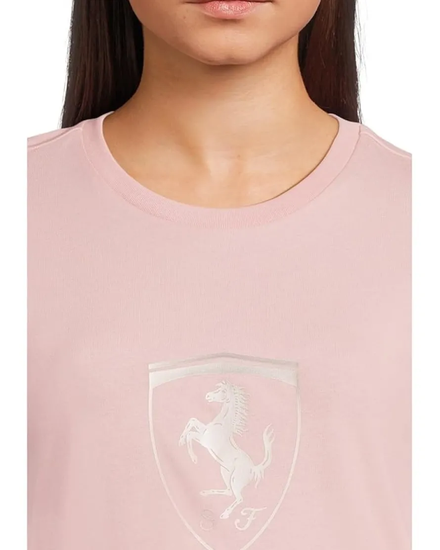 - Show your passion for racing with this relaxed fit PUMA® Scuderia Ferrari Tonal Shield T-shirt, blending PUMA’s athletic style with the prestige of Scuderia Ferrari. It is styled with short sleeves, a crew neckline, and a straight hem. Crafted from premium fabric for maximum comfort and durability, this crew-neck tee offers a classic fit that’s neither too tight nor too loose. This casual tee is made with at least 20% recycled material. Easy to care for and perfect for everyday wear, it blends athletic style with the prestige of Scuderia Ferrari.