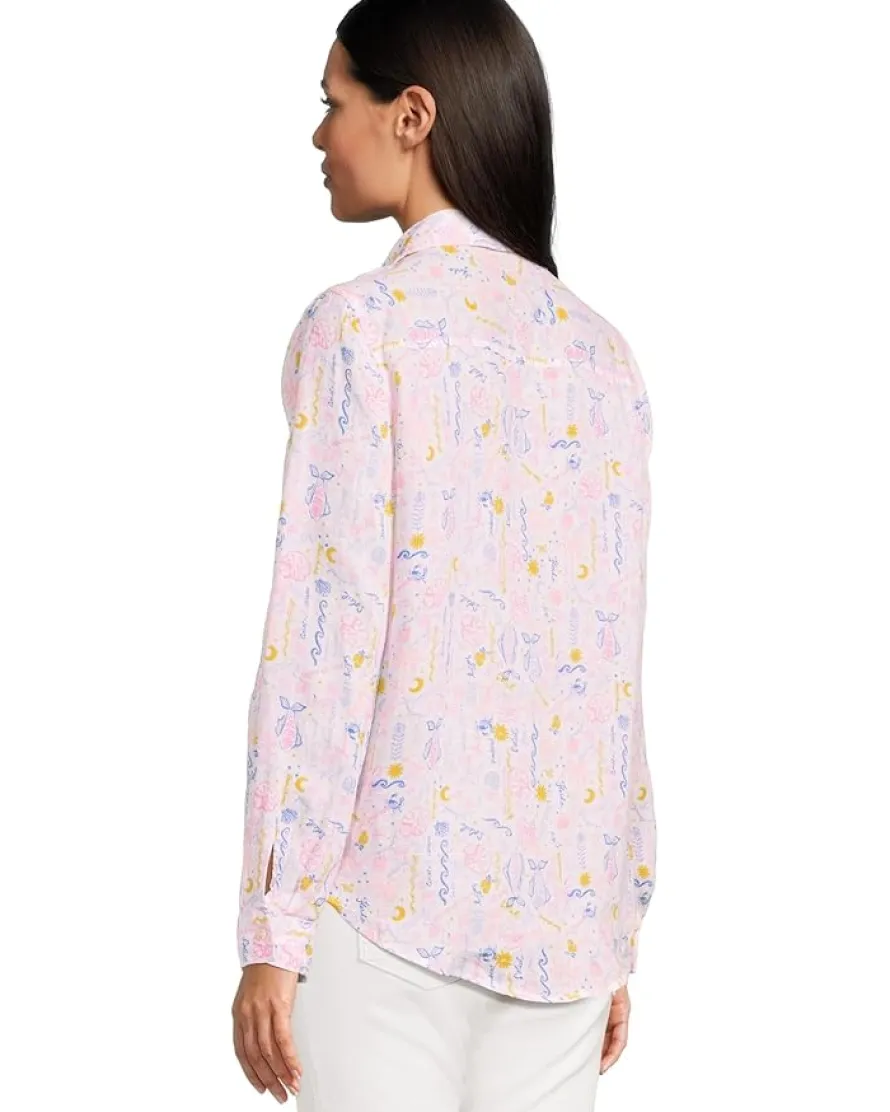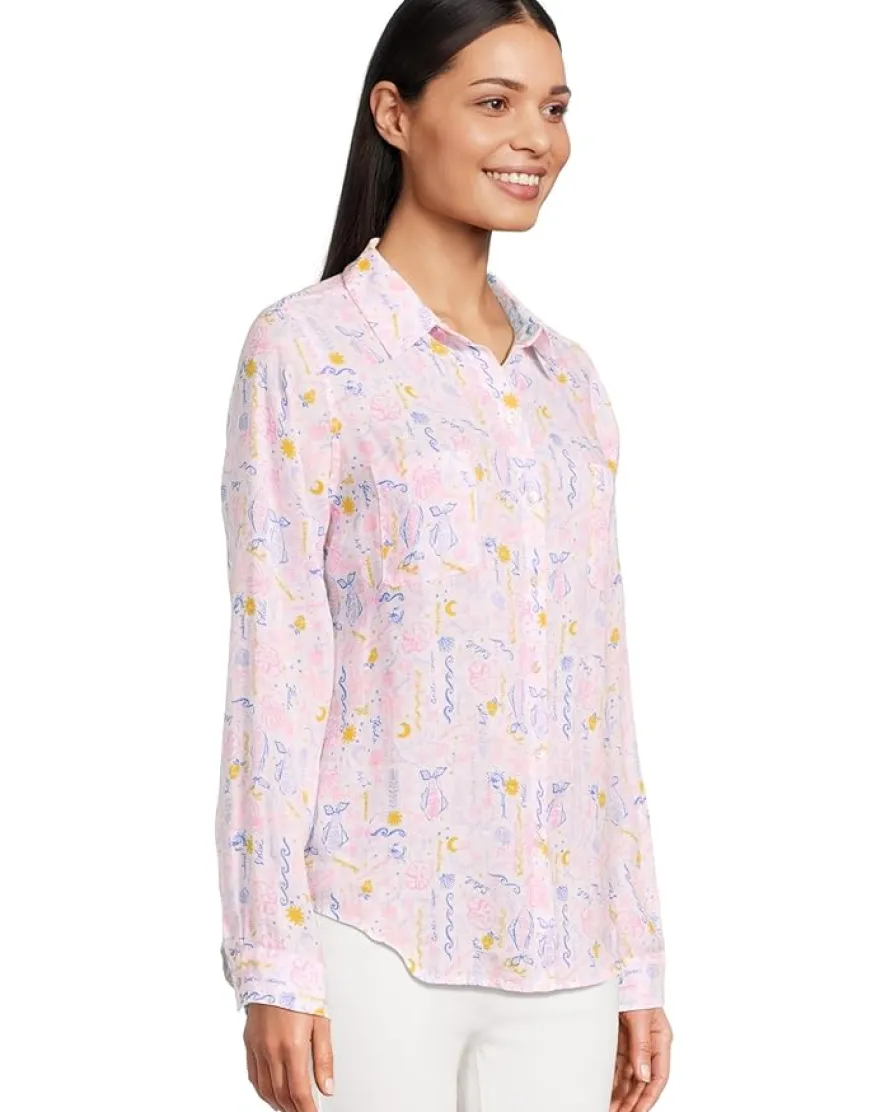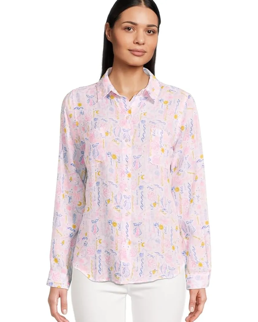 - The Lilly Pulitzer® Sea View Button-Down is a wardrobe staple. Pair this long sleeve linen button down shirt with printed shorts for a casual look or dress it up with an elegant white pant. Constructed from breezy linen with an easy fit.
