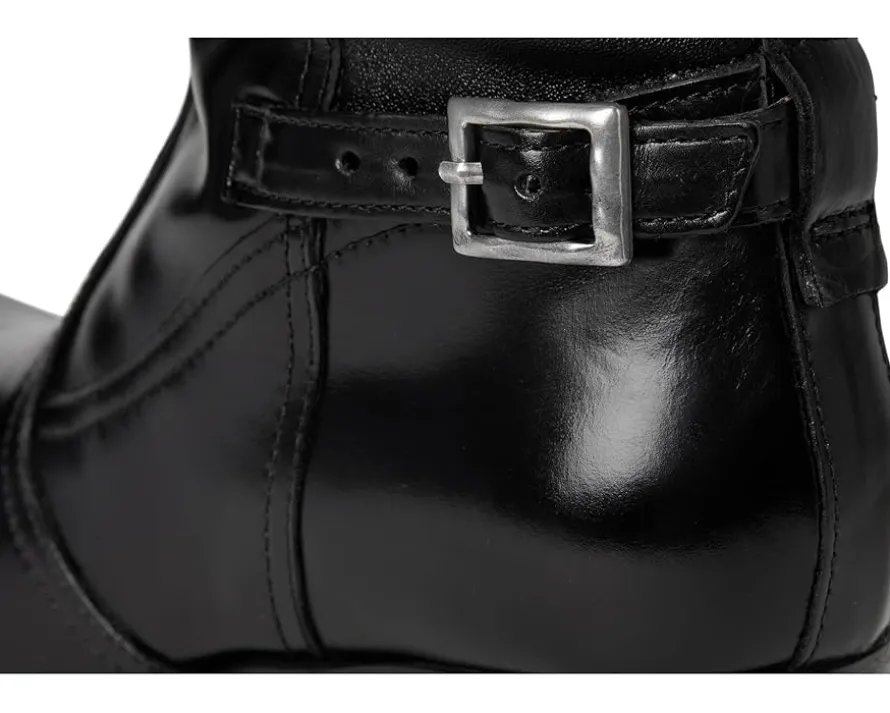 - The Miz Mooz® Serenna Boots are a bold, knee-high statement piece that blends vintage charm with modern edge. Crafted in rich leather upper with man-made accents, they feature a sculpted block heel and a platform for elevated comfort. The standout detail is a buckled strap along the backstay, and the leather lining ensures all-day wearability.