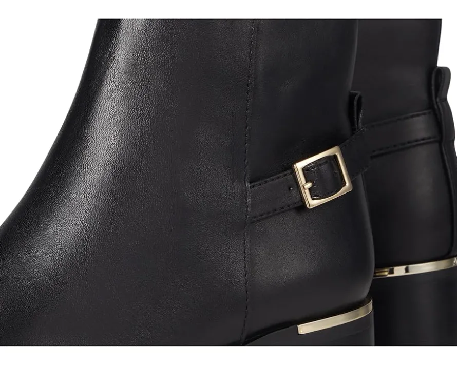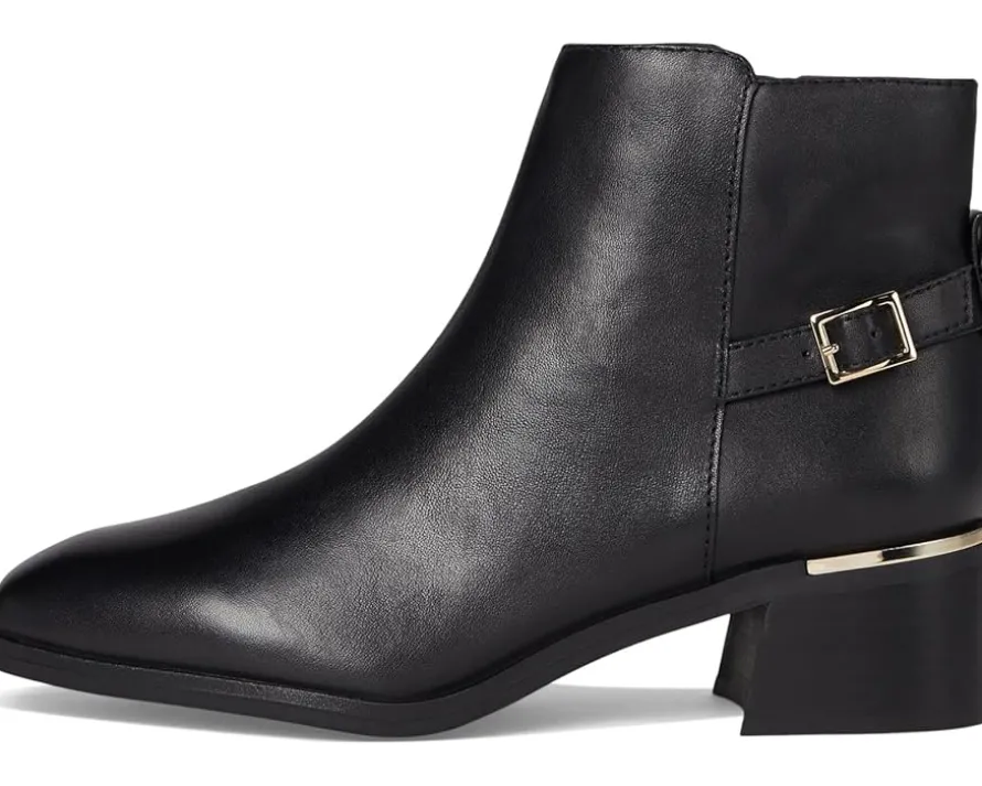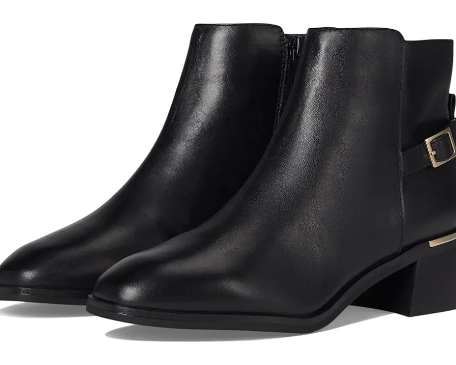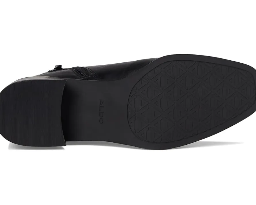 - Feel unstoppable with every step in ALDO® Serrafina boots made for bold journeys. Crafted from leather upper, polyester lining, and insole, this pair of boots features snip toe, zippered side closure, block heel, buckle detailing, and ankle-high silhouette. These ankle boots not only look good, they feel good adding style into your everyday.