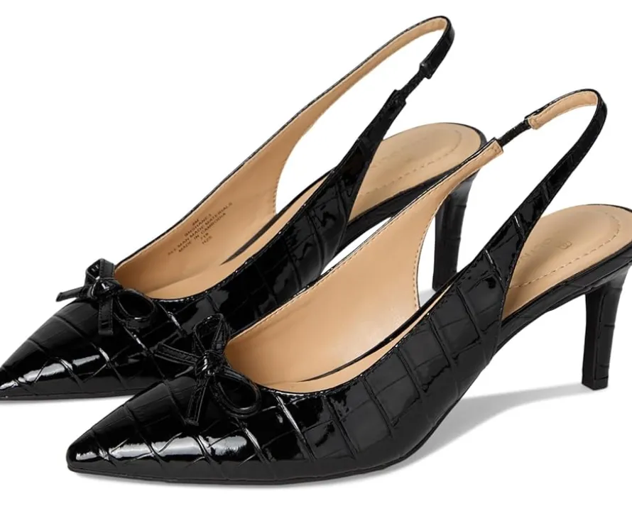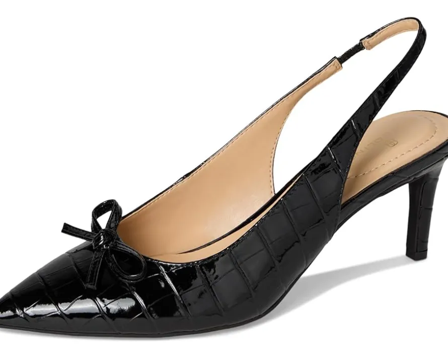 - The Bandolino® Shane slingback pumps are both feminine and sophisticated. Strike a pose in this beautiful classic slingback silhouette with a feminine bow detail. The polyurethane upper of these sandals features an adjustable buckle strap for a secure fit. These heeled pumps are crafted with a foam footbed and man-made lining that make them comfortable to wear for long hours. From getting ready for work to going out for a date, these heeled sandals are the perfect footwear choice.