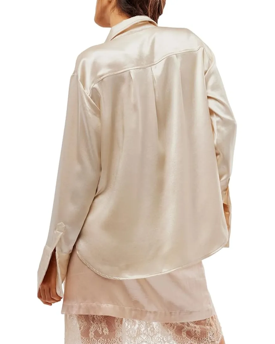 - Chase your dreams in the ethereal Free People™ Shooting For The Moon Button-Down, offering a relaxed, drapey fit. Its classic collar and double bust patch pockets exude a timeless charm, while the rounded bottom hem and delicate pleating at the back add a touch of whimsical elegance.