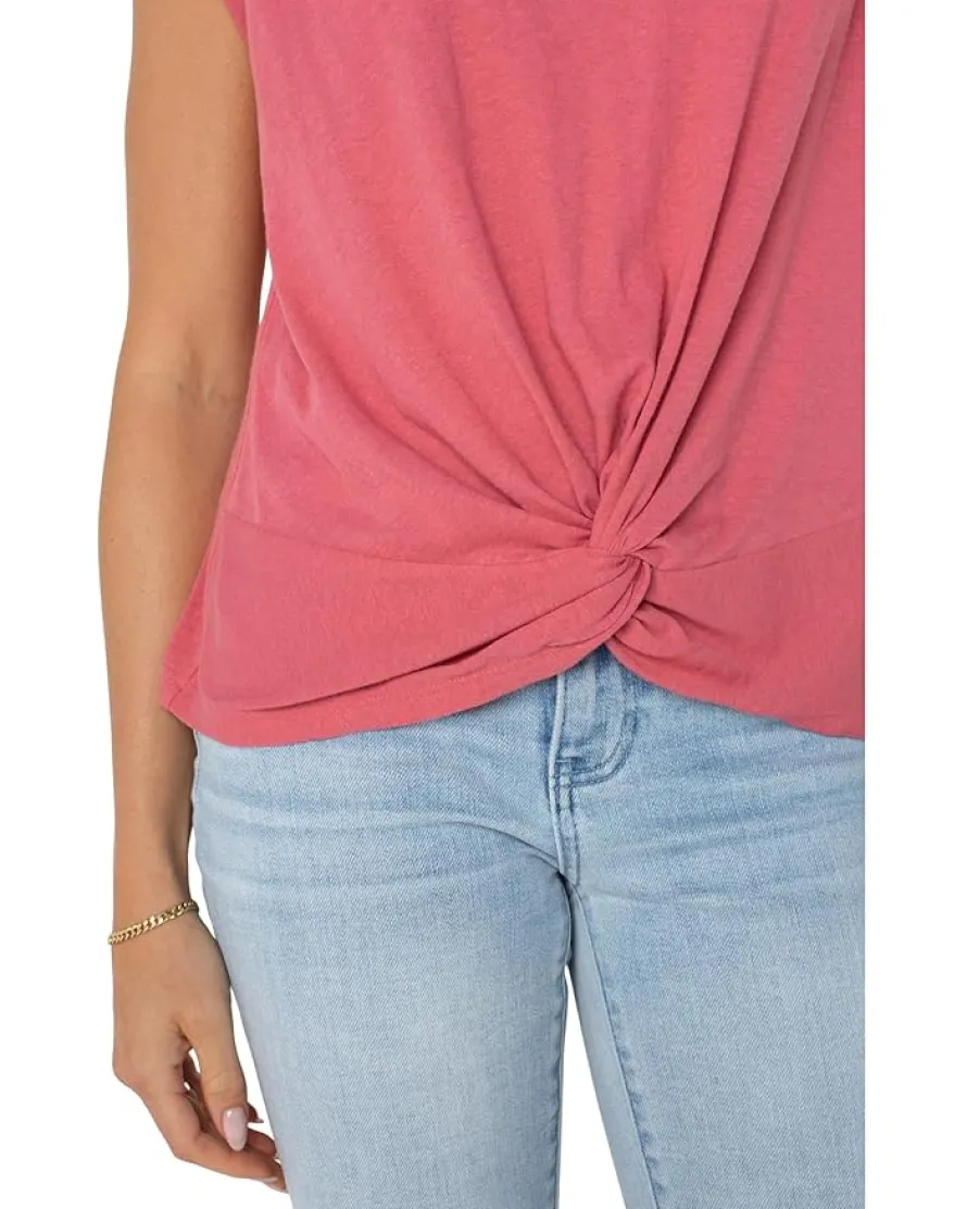 - Enhance your everyday glam with the Liverpool™ Los Angeles Short Sleeve Boat Neck Knot Front Knit Top. This refined short sleeve knit top can be worn on its own or layered under your favorite jacket. Its sophisticated design features a boat neck and front knot. Crafted from a linen blend jersey knit fabric, it embodies both comfort and style.