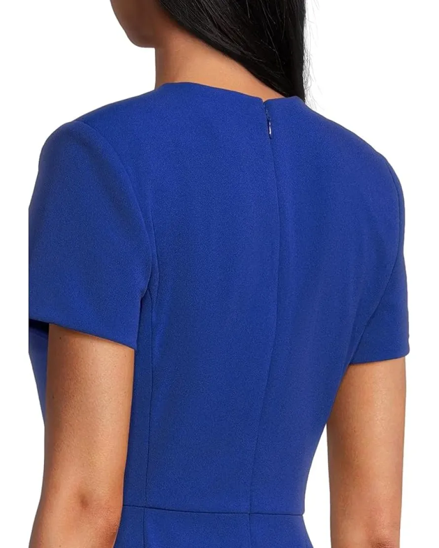 - Knee-length sheath silhouette.