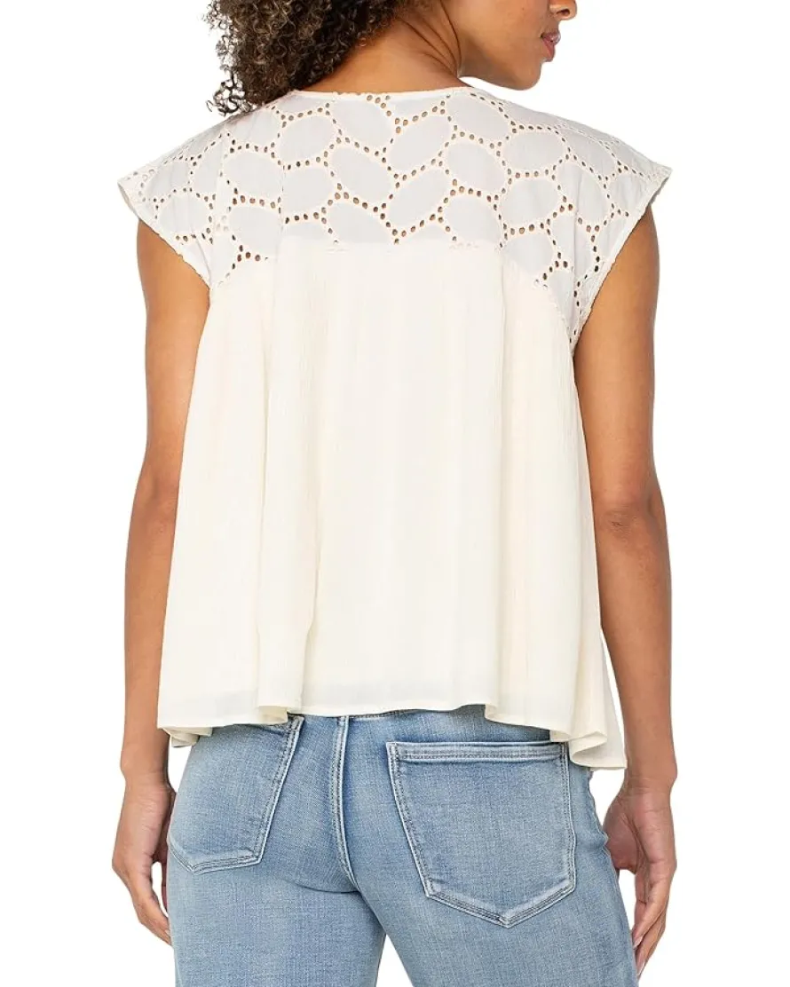 - Look effortlessly cool and stylish wearing the Liverpool™ Los Angeles Short Sleeve Dolman Boat Neck Woven Blouse W Embroidery. This versatile top features a boat neckline and short sleeves, perfect for any warm weather occasion. Rock it with jeans or shorts for a chic evening look.