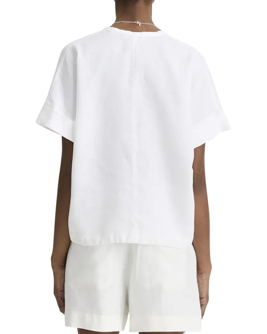 - Cut from light and airy linen, the Vince® Short Sleeve Doman Sleeve Pullover is finished with an adjustable drawcord hem for added shape and volume. It features a notched V-neckline and short sleeves.