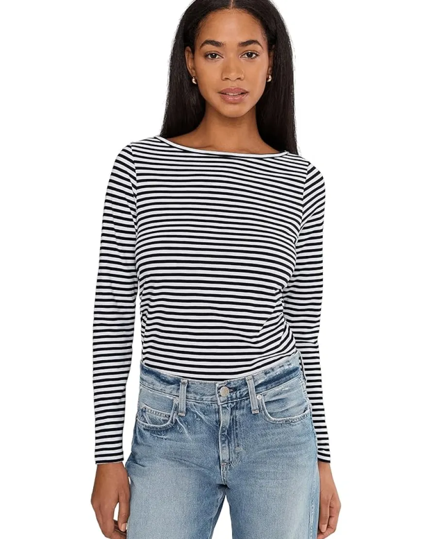 - Find the perfect must-have essential to your everyday style in the Madewell® Side Ruched Slub Long Sleeve Stripe. This pull-on style top offers a crew neckline, side ruching, long sleeves, and a straight hemline.