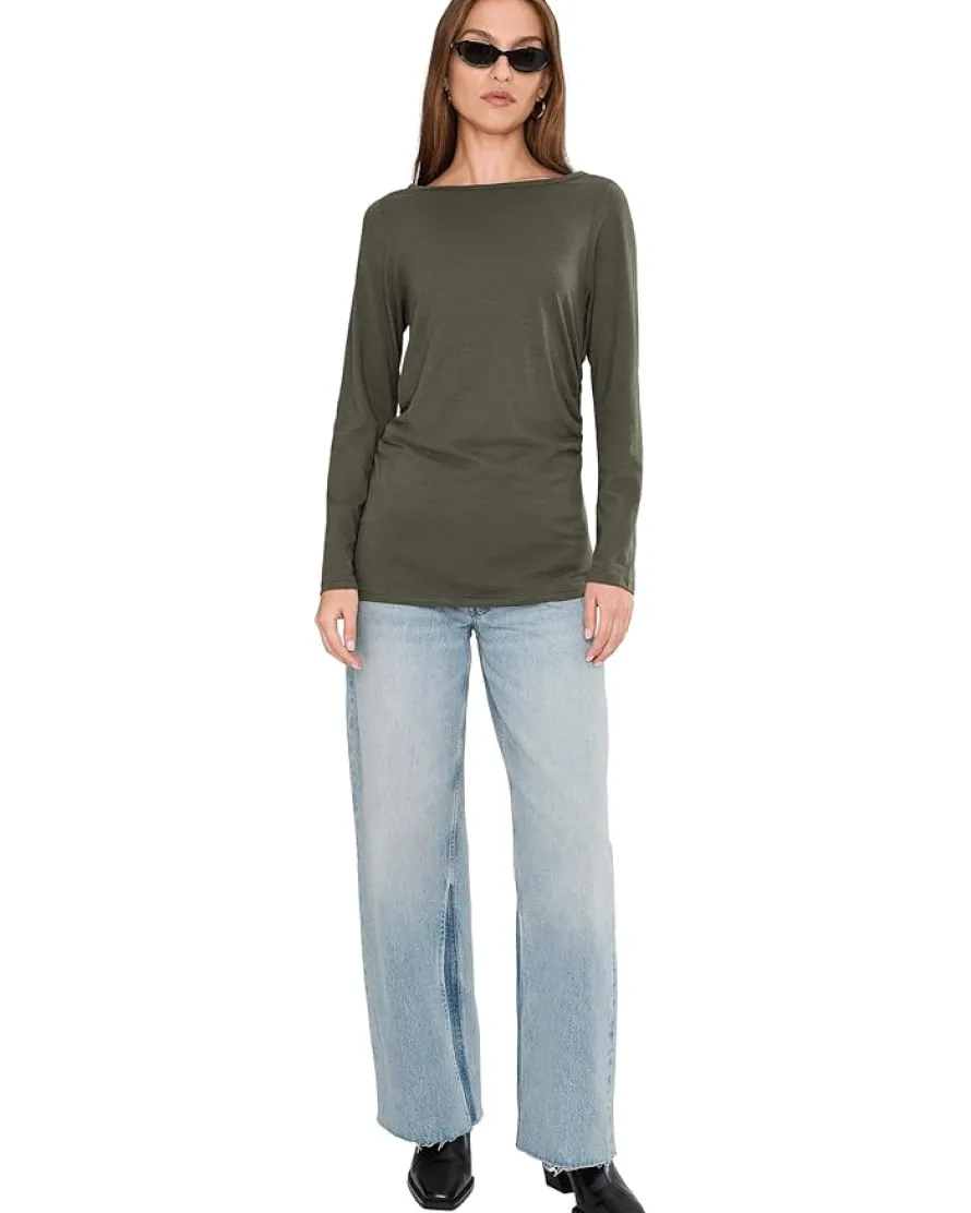 - Casual and chic. Find the perfect layer of cozy comfort in the Madewell® Side Ruched Slub Long Sleeve. This pull-on style top features a crew neckline with long sleeves, side ruched detailing and a straight hemline.