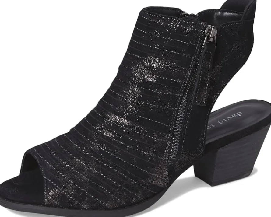 - Treat yourself to the David® Tate Sideview. These ankle boots feature a luxurious suede upper, complemented by a nylon lining for all-day comfort. The dual side zippers not only add a touch of edgy flair but also ensure easy on-and-off wear. Walk confidently on durable rubber soles that offer superior traction and stability, while the cuban heel provides just the right amount of lift.