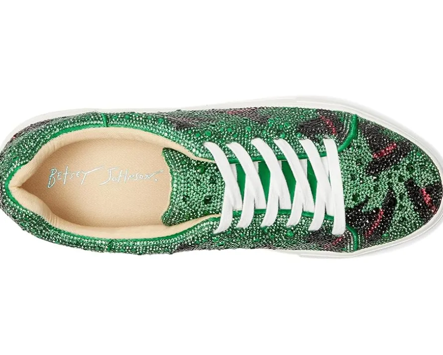 - The Blue™ by Betsey Johnson Sidny sneaker will lend a dose of glam to your casual days with a rhinestone-encrusted fabric upper, low-profile silhouette, padded collar, and a round toe.