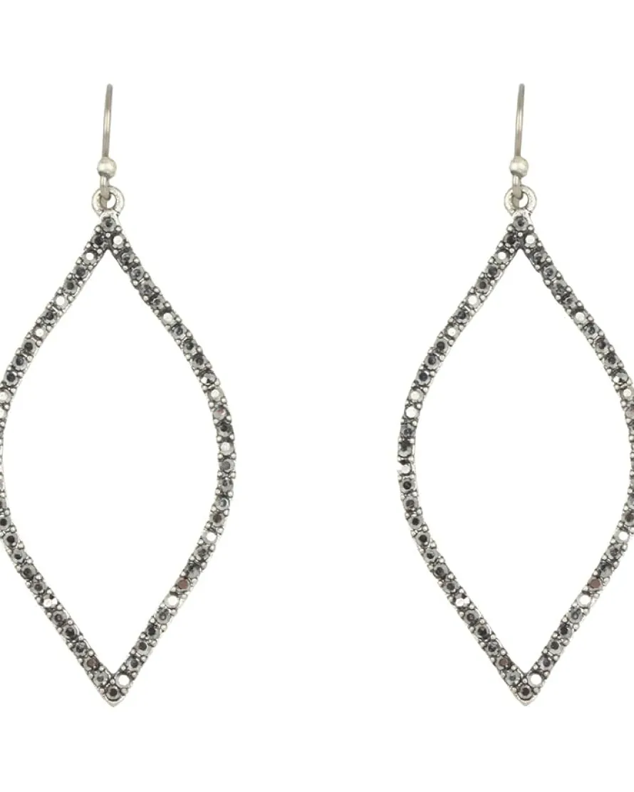 - Silver-tone oblong earrings with pavé accents.