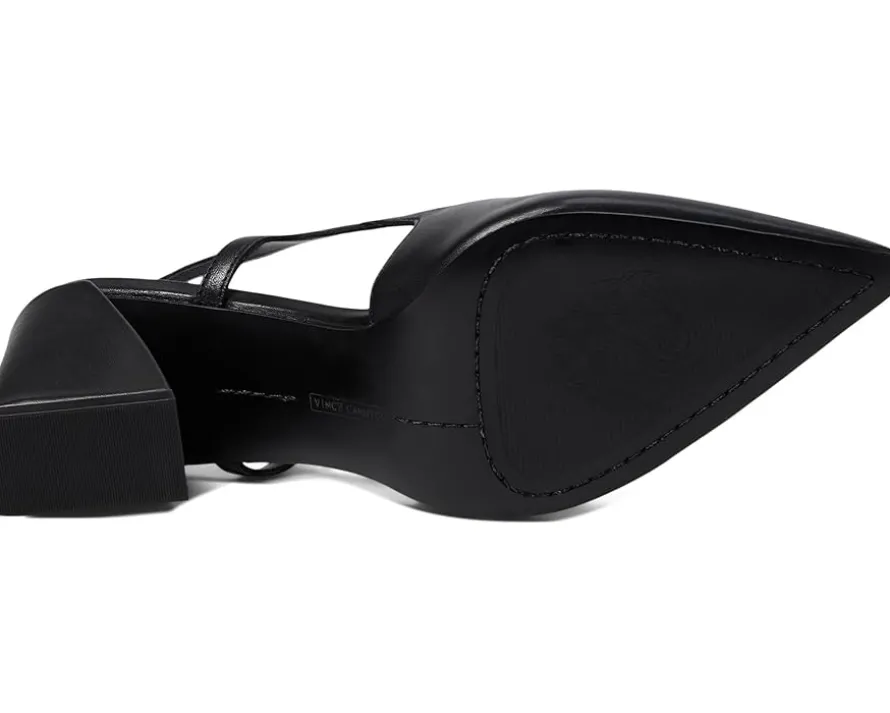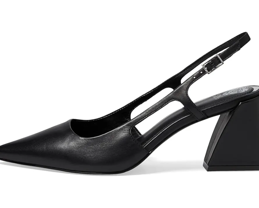 - Make a statement wearing the Vince Camuto® Sindree pumps. Featuring leather upper and geometric cutouts along the sides, these heels are sure to turn heads wherever you go. The padded footbed ensures that you can dance the night away in comfort, while the faux leather lining adds a touch of luxury.