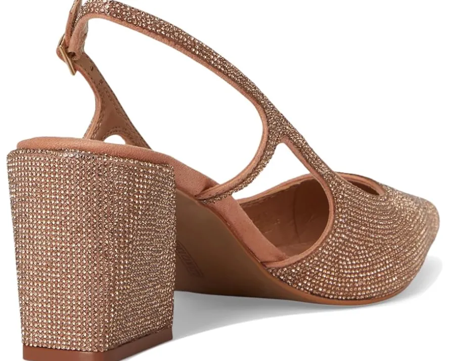 - Amp up your evening style with the Vince Camuto® Sindreea Rhinestone Block Heel Slingback Pump, now with a glamorous refresh. These heels feature all the elements you love: a walkable flared block heel, buckle adjustable sling, and a padded footbed for ultimate comfort. What sets them apart for your night out is the sparkling gems that adorn them, shining bright under the party lights.