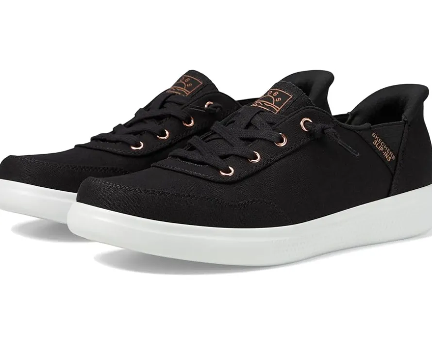 - The BOBS from SKECHERS® SKIP CUTE – B CUTE SWEET HANDS FREE SLIP-INS are the ultimate fusion of style and convenience. Embellished with a canvas upper featuring eye-catching deco laces, these slip-ins effortlessly elevate your outfit. The soft jersey lining and the Skechers Memory Foam™ cushioned comfort insole offers superior comfort and support.
