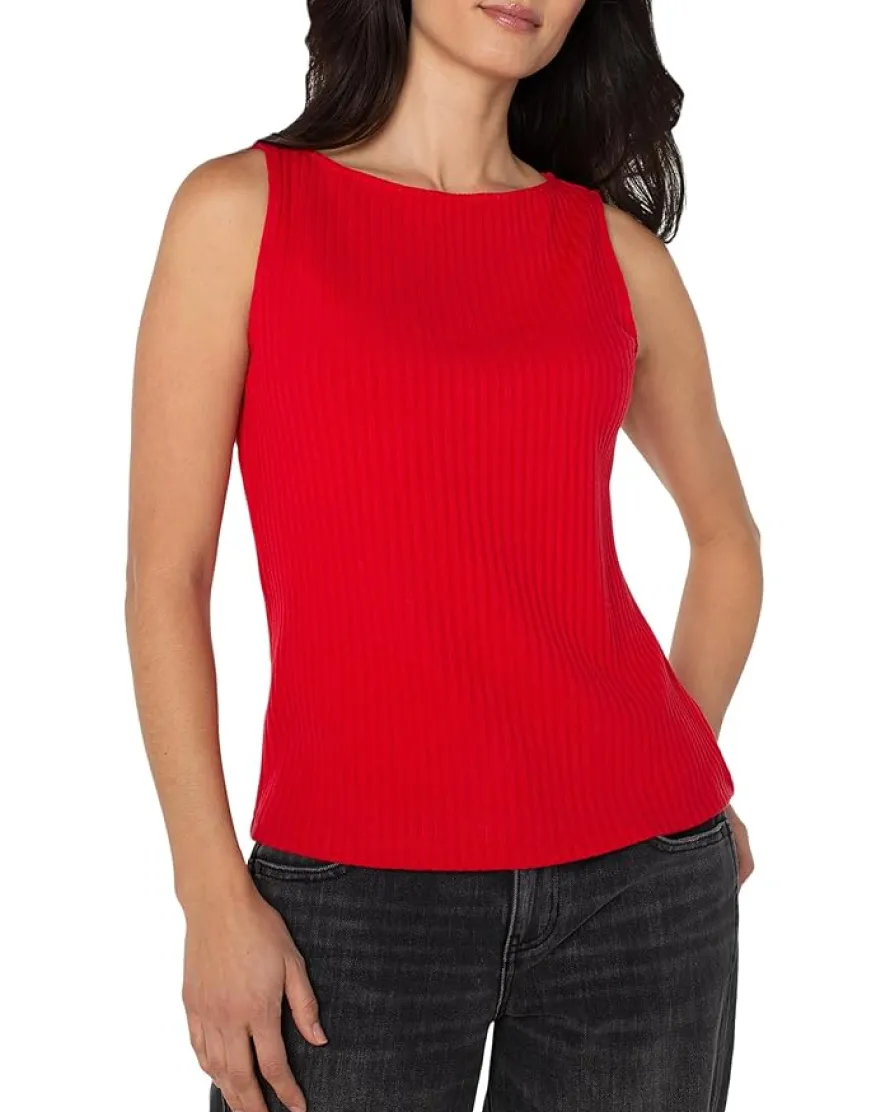 - The Liverpool™ Los Angeles Sleeveless Boat Neck Rib Knit Top is an elegant statement piece in a flattering boat neck. Featuring our large rib knit that is super comfortable and easy to wear. Perfect for layering or on its own. It features sleeveless style, classic fit, and pull-on construction.