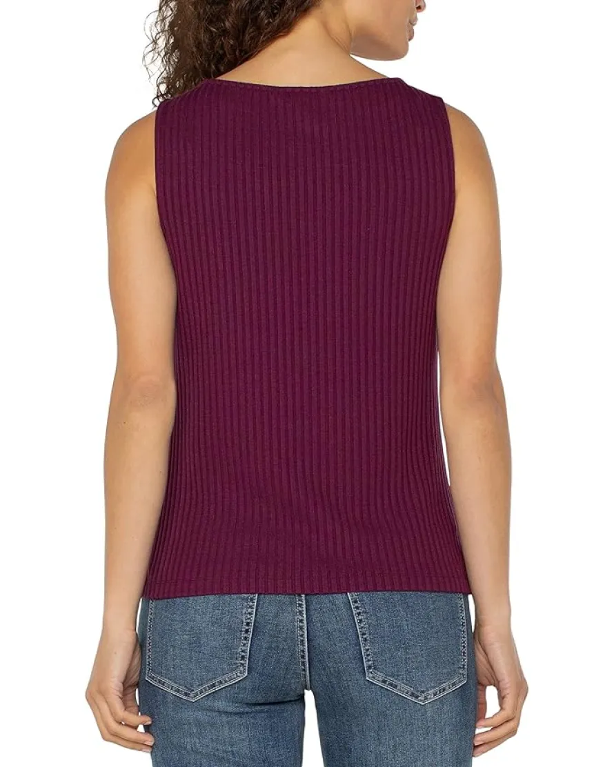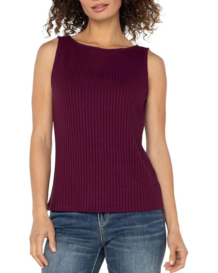 - The Liverpool™ Los Angeles Sleeveless Boat Neck Rib Knit Top is an elegant statement piece in a flattering boat neck. Featuring our large rib knit that is super comfortable and easy to wear. Perfect for layering or on its own. It features sleeveless style, classic fit, and pull-on construction.