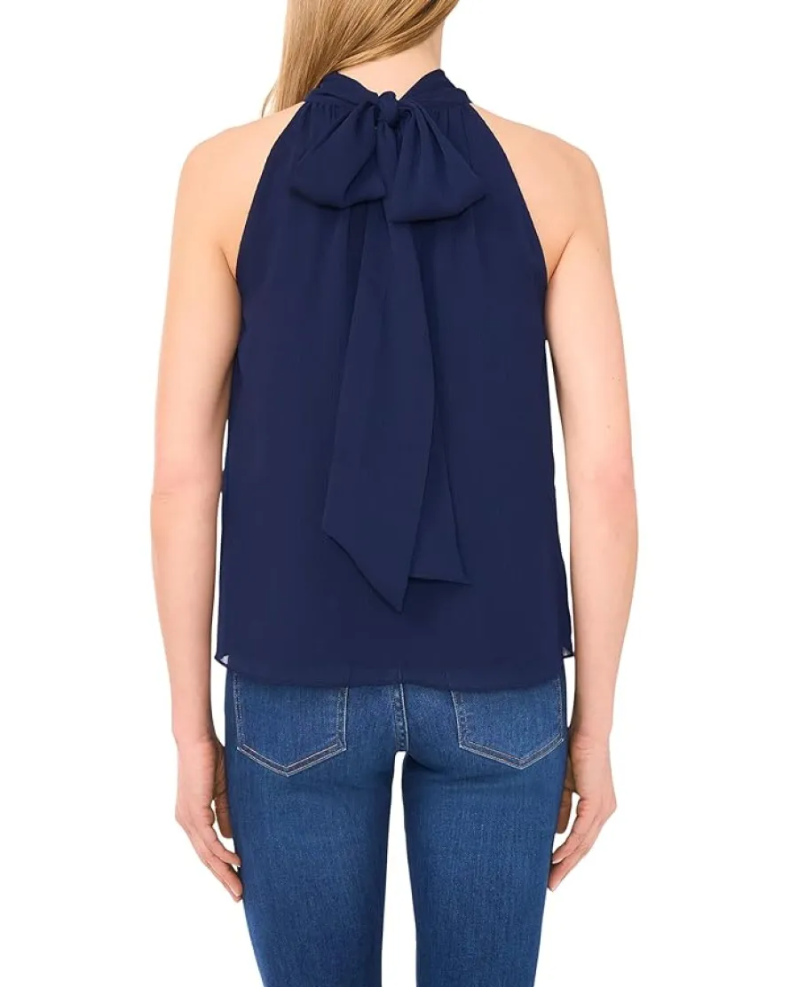 - Trendy and chic, the CeCe™ Sleeveless Halter Top With Back Bow is a must-have in your wardrobe. The pull-on style sleeveless top features a halter neck with back bow tie, ditsy embroidery, and an allover polka dot print. Crafted from lightweight fabric, it’s perfect for warm weather and adds a stylish twist to any casual or evening ensemble.