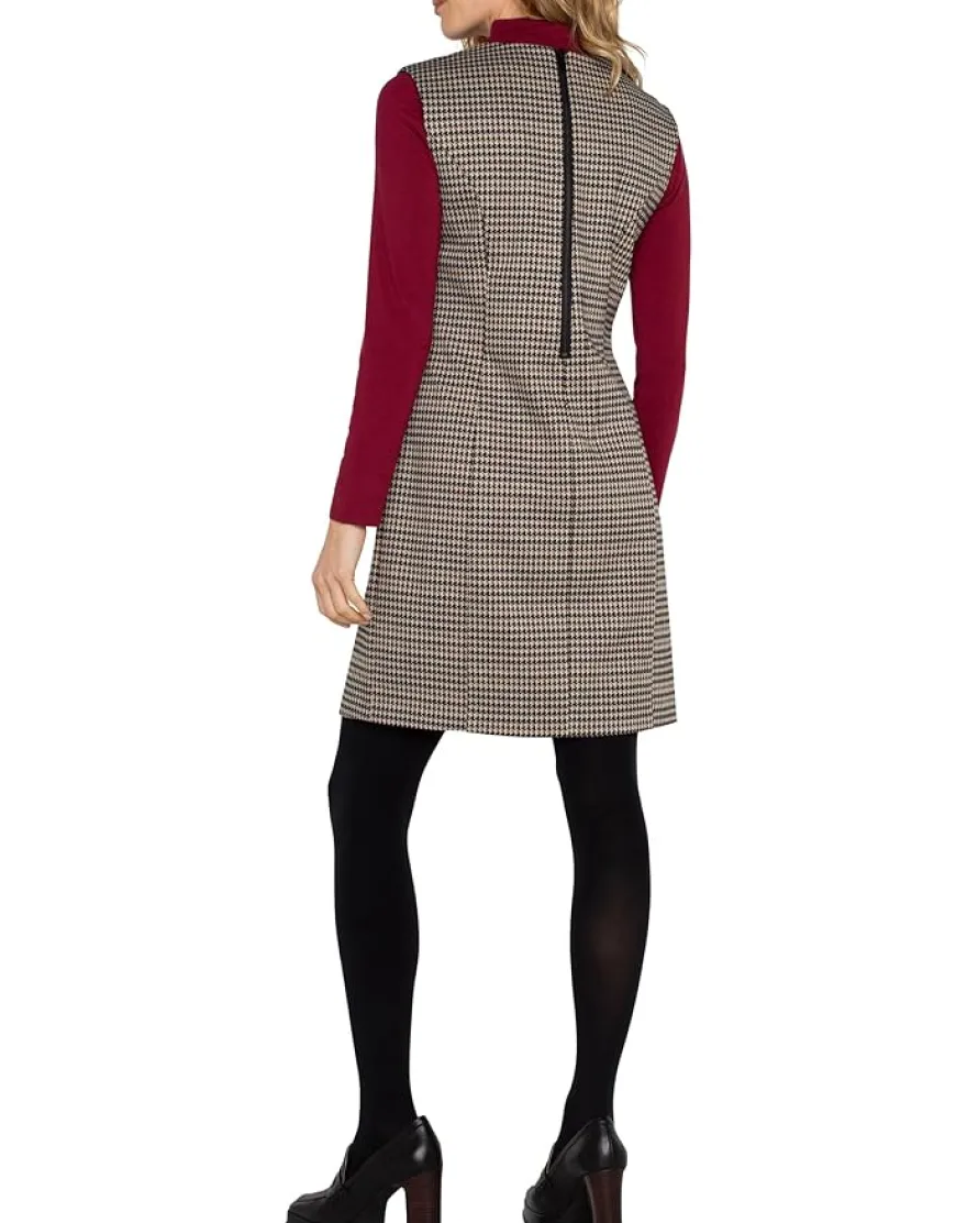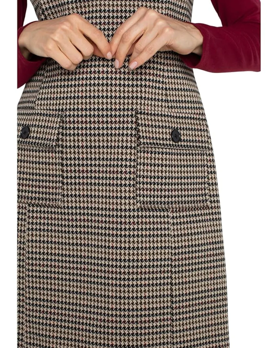 - Crafted with care and attention to detail and made in a beautiful black tan houndstooth fabric, the Liverpool™ Los Angeles Sleeveless Shift Dress exudes timeless elegance with a modern flair. Its two front pockets add a touch of practicality without compromising style while the zippered back closure ensures a seamless fit, allowing you to slip into this dress with ease. This patterned dress comes with a sleeveless style, crew neckline, and straight hem. Elevate your outfit with classic black heels or opt for a more casual vibe with your favorite pair of loafers.