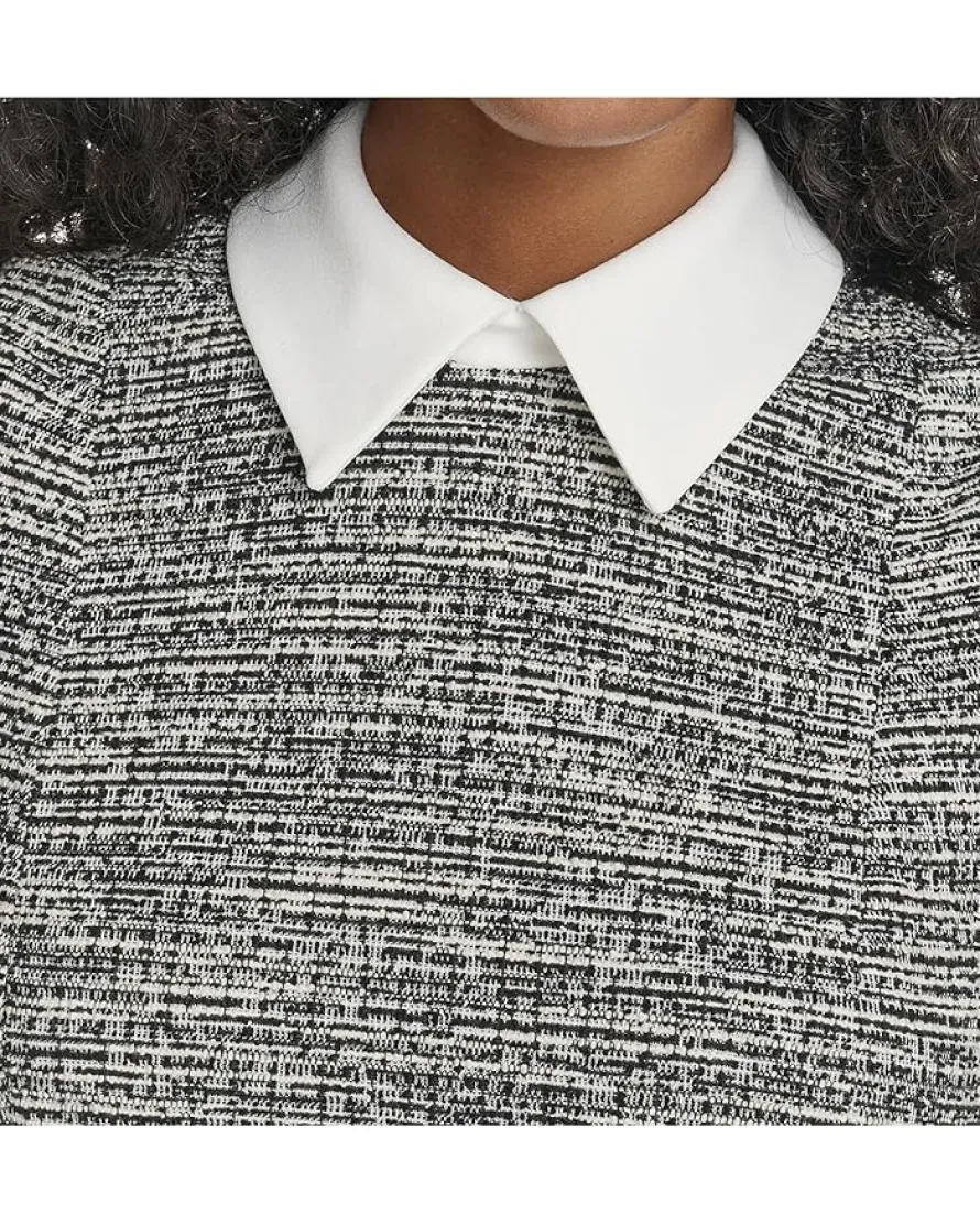 - Calvin Klein® Sleeveless Tweed Aline with Collar dress.
