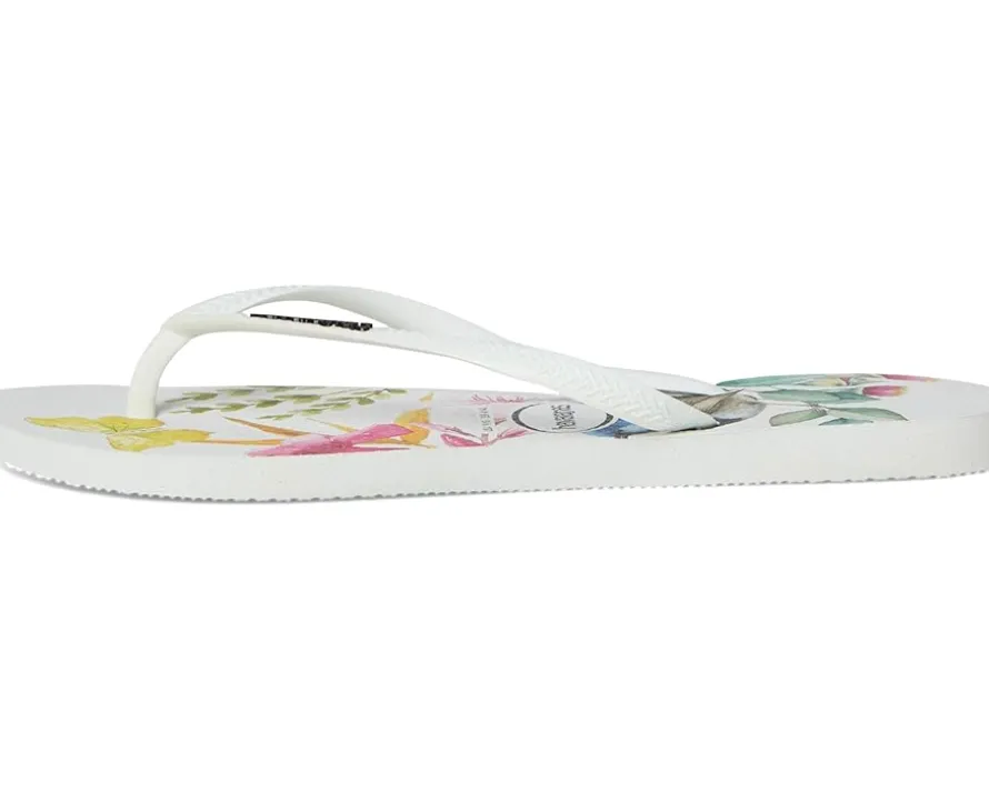 - The Havaianas® Slim Flora Sandals carry the perfect combination of nature prints and beautiful colors. This pair is a synonym of style and sophistication. They are crafted with a rubber upper, rubber insole, and natural rubber lining. These printed flip-flops are easy to fall in love with and to style up your best looks. Just go for it.