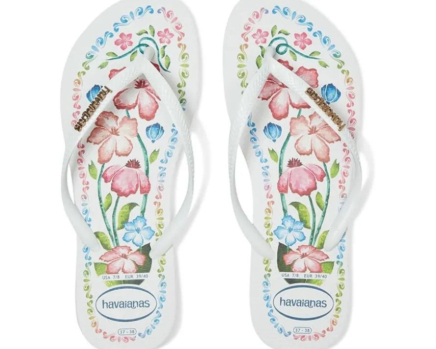 - The Havaianas® Slim Tropical flip-flop has the Slim design you already know, with thinner straps and soles, featuring beautiful Brazilian tropical prints. The sandal also has the metallic Havaianas logo prominently displayed on the straps. Choose the one that suits you best now.