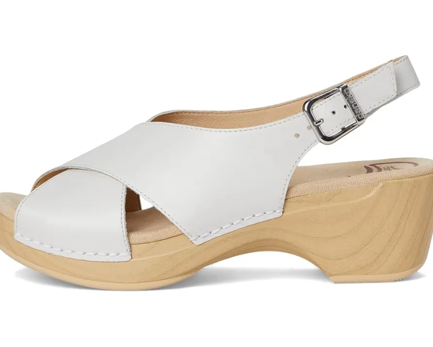 - Get wrapped up in the unique style of Dansko® Sloane, a thoughtfully constructed sandal that’s easy to dress up or down. The crisscross strap with buckle closure at the sling ensures a secure and adjustable fit. The upper is made from full grain leathers and suede treated with 3M Scotchgard, providing excellent stain resistance. The socklining features Dri-Lex treatment with microbe resisting properties for effective moisture management and odor control, keeping your feet fresh all day. Also, the shock-absorbing foam footbed offers superior comfort and support.