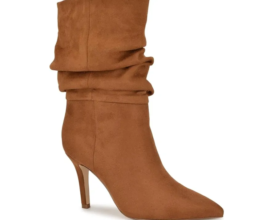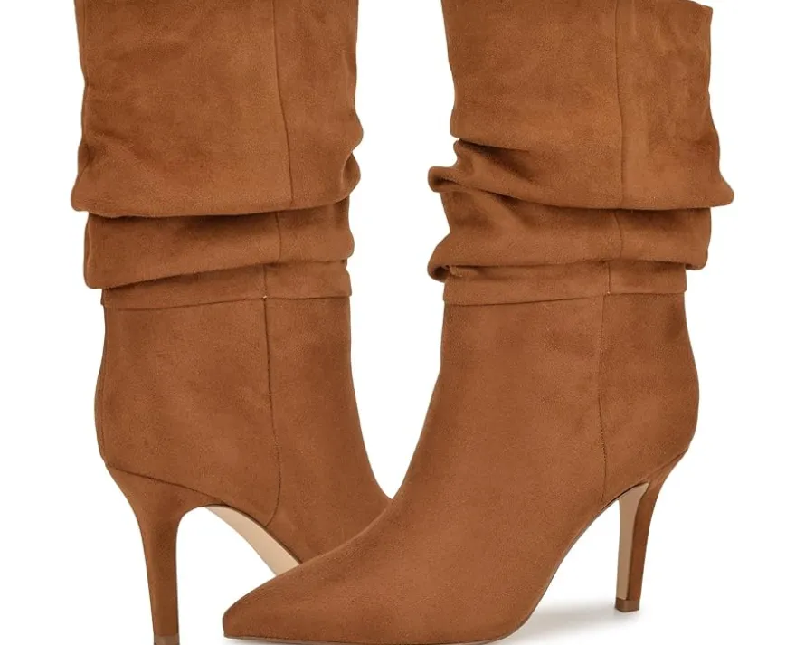 - Step out in chic style wearing the mid-calf Blue™ by Betsey Johnson Slouch Boots. The pull-on footwear features leather upper with stiletto heel and pointed toe silhouette.