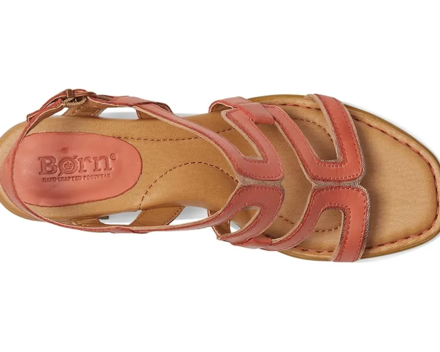 - The Born® Sofia features a caged design, mixing both full-grain and metallic leathers, for a sandal that makes a seamless transition from day to night. This Born sandal features an adjustable slingback strap with hidden elasticized gore to allow easy on and off without undoing the strap. The polished wrapped leawood heel is an easy height to wear all day long. The sandals feature soft hand-finished full-grain combination leather or metallic combination leather upper, breathable soft microfiber lining, and cushioned microfiber-covered footbed with extra foam for added comfort.