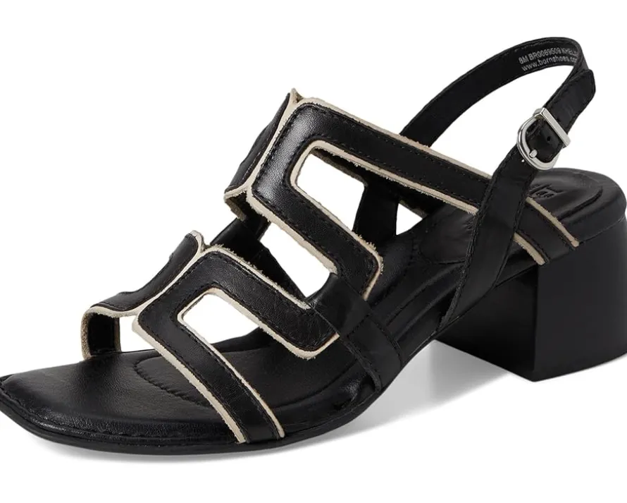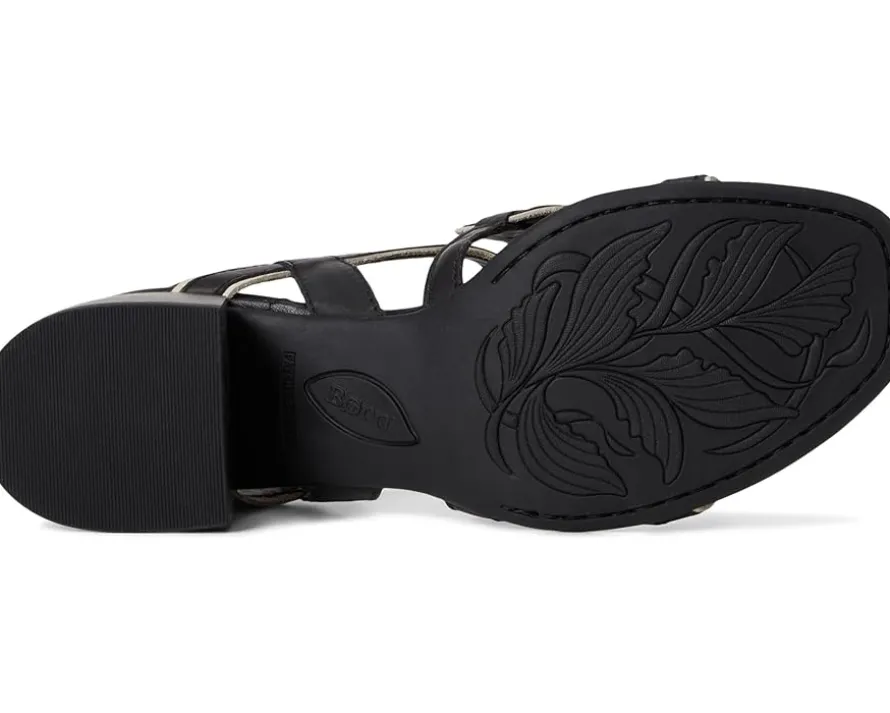 - The Born® Sofia features a caged design, mixing both full-grain and metallic leathers, for a sandal that makes a seamless transition from day to night. This Born sandal features an adjustable slingback strap with hidden elasticized gore to allow easy on and off without undoing the strap. The polished wrapped leawood heel is an easy height to wear all day long. The sandals feature soft hand-finished full-grain combination leather or metallic combination leather upper, breathable soft microfiber lining, and cushioned microfiber-covered footbed with extra foam for added comfort.
