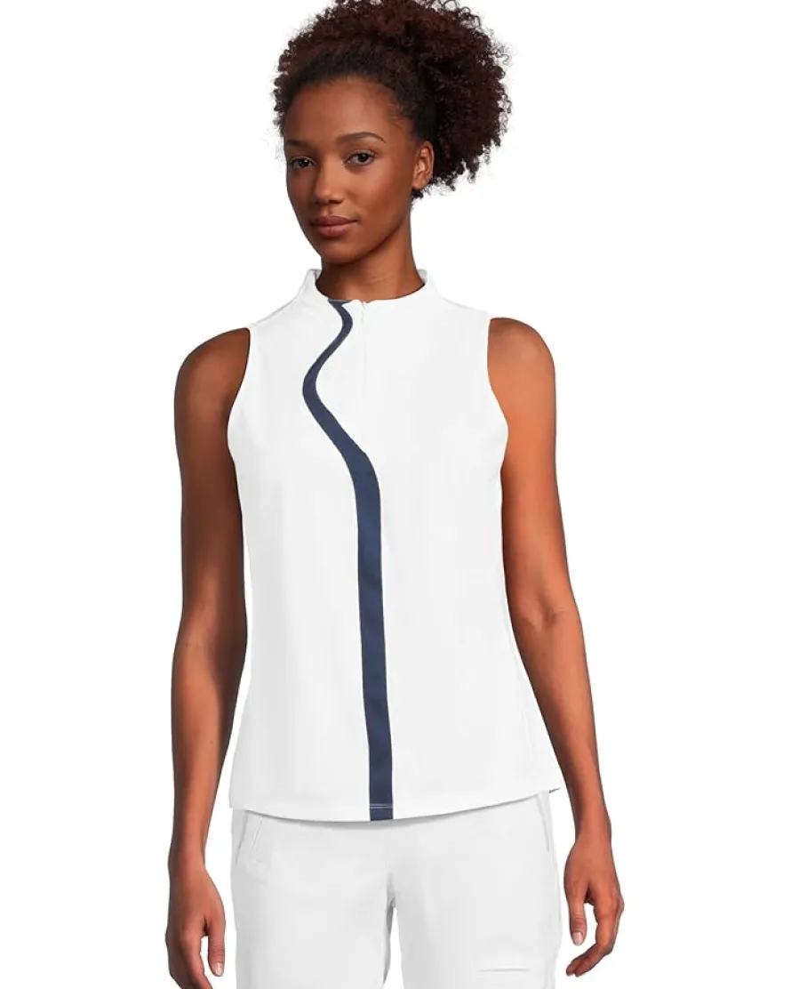 - Flaunt those shoulders wearing the Jamie Sadock® Solid Sleeveless Top. Made from Cooltrex performance, lightweight, breathable performance fabric with stretch this top features traditional polo self collar with zippered placket, sleeveless style, modern, tasteful design, classic fit, and straight hem. Classic silhouettes infused with distinct details that set you a cut above others. Look good feel good play good!