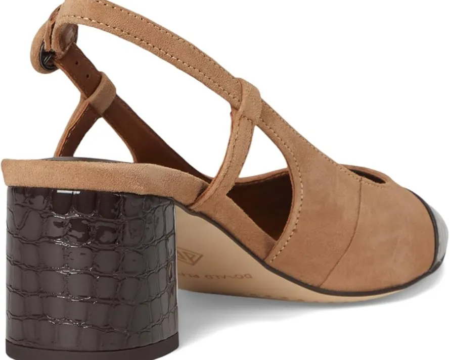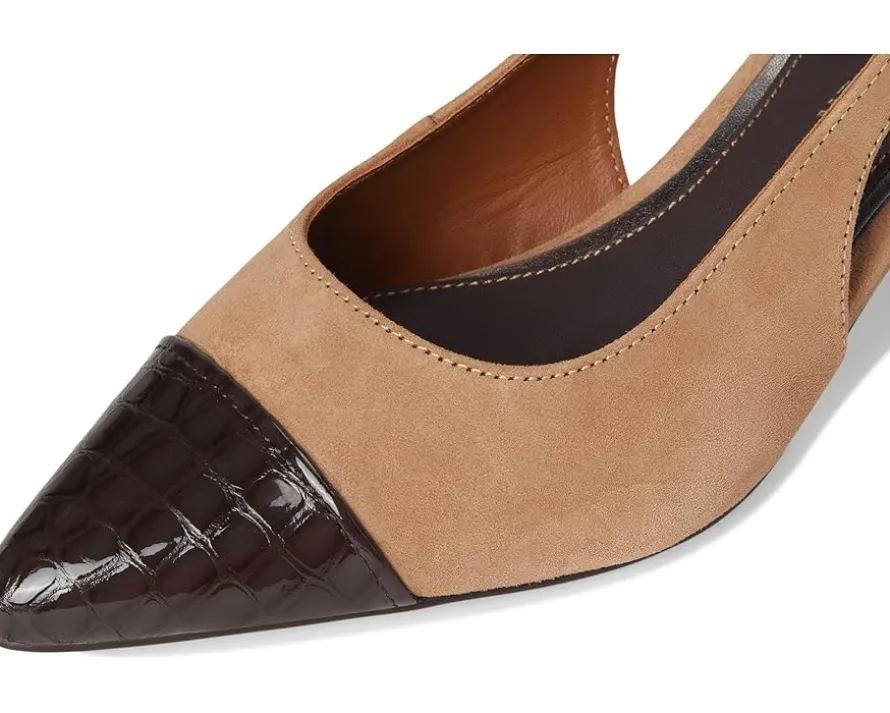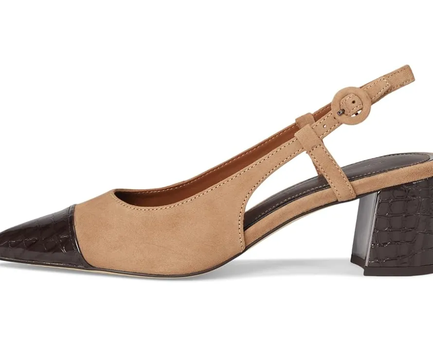 - Slingback strap with buckle closure.