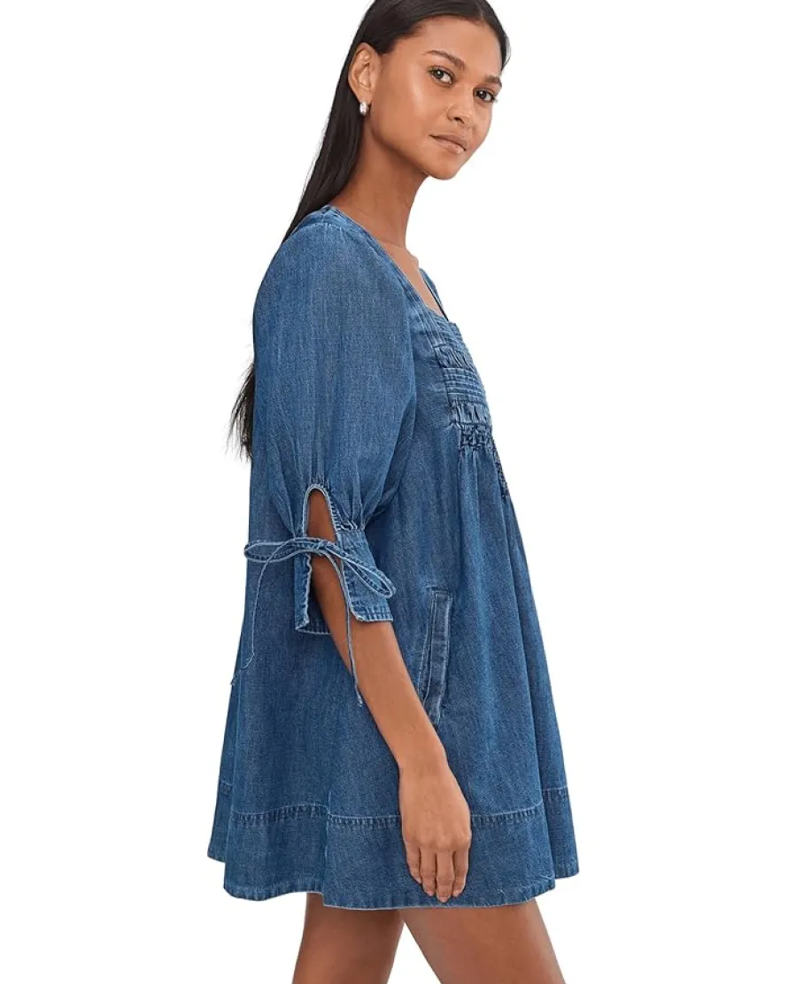 - The perfect blend of cool and classic, this totally timeless Free People™ Sonora Denim Mini Dress is featured in a staple chambray fabrication with a square neckline, slightly puffed long sleeves, and defined detailing at the bust for a dimensional finish. Why We ♥ It: The perfect piece to pair with anything from high boots to cool sneakers or slides, this super versatile mini dress is designed to take you from season to season.