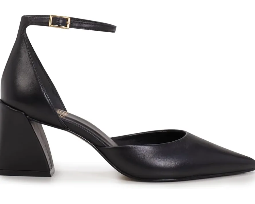 - Sorenn is a two piece, point toe pump with adjustable ankle strap and buckle closure. The silhouette is versatile and works for all four seasons. The sculpted heel is leather covered and measures 2.75 inches. Thanks to the comfort sock and rubber outsole, your feet will be ready to take you wherever you want to go.