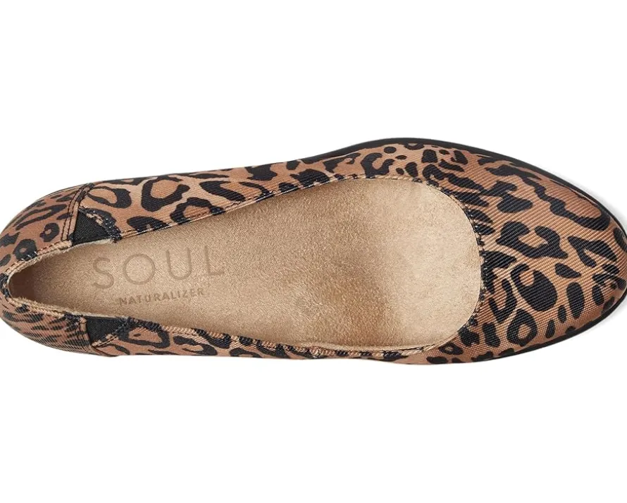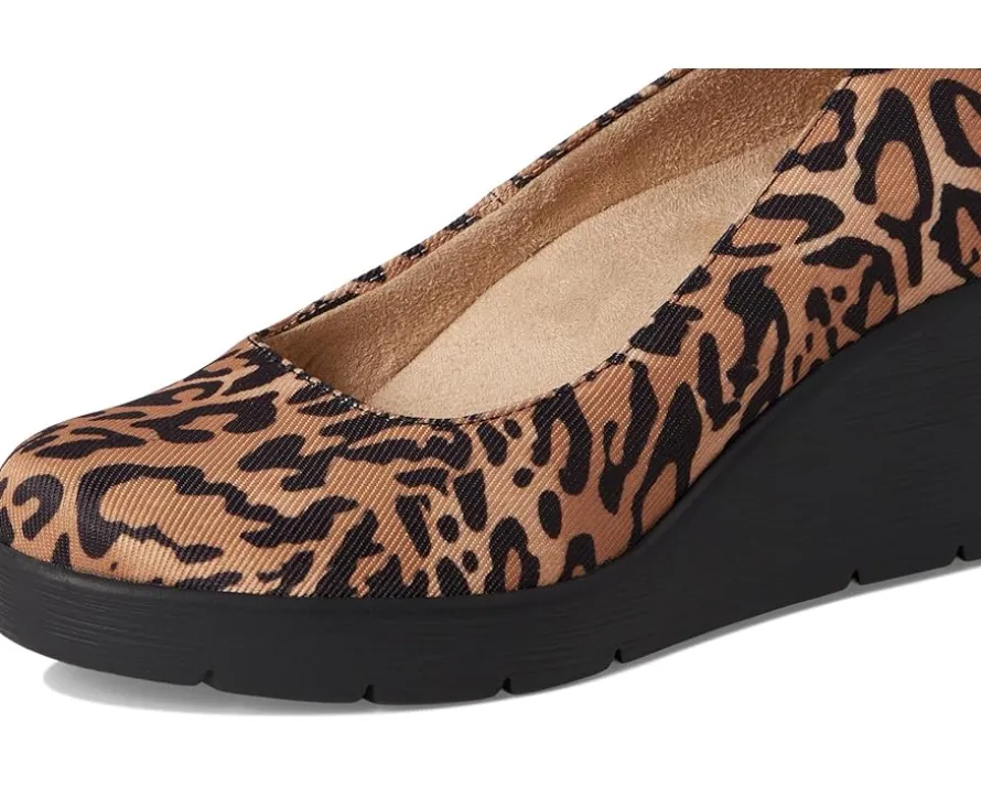 - From brunch to exploring, the Naturalizer® Soul Naturalizer About Time wedge is your go-to for casual chic. Featuring a chic, closed-toe design with a versatile polyurethane upper and faux leather insole, this shoe combines durability and luxury with a recycled polyester lining. The ContourFIT™ technology ensures a perfectly sculpted insole with soft foam lining, providing arch support and memory foam cushioning to keep your feet comfy all day. Designed with elasticized goring for extra flexibility, this pull-on wedge heel offers ease and comfort, while the sock lining keeps things fresh. A lightweight, flexible outsole completes the look, giving you all the support you need for effortless style and all-day wearability.