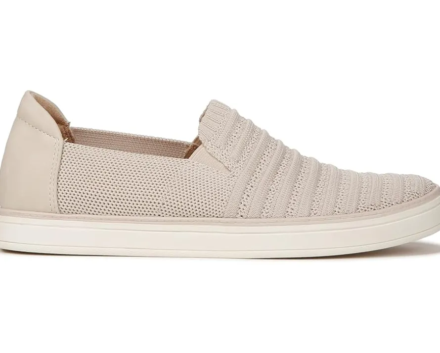 - Kick it in style wearing the Naturalizer® Kemper. Crafted from canvas, g=fabric upper, this pair of slip-on shoes features almond toe design, padded collar or frayed topline with back pull tab for easy on and off, and brand detailing on the footbed.