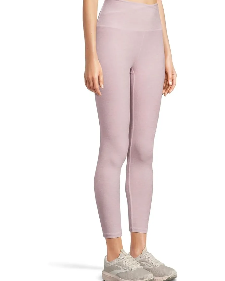 - The Beyond Yoga® Spacedye At Your Leisure High Waisted Midi Leggings are the perfect curve-enhancing yoga leggings that your friends keep talking about. These active leggings come with an overlap waistband, made from incredibly soft Spacedye fabric. It sits at the natural waist. This pair of high-waisted midi leggings is a fan favorite for the way it shows off and flatters all body shapes, and is versatile enough for working out, vegging out, or travel too. Pair it with the matching bralette to complete the look.