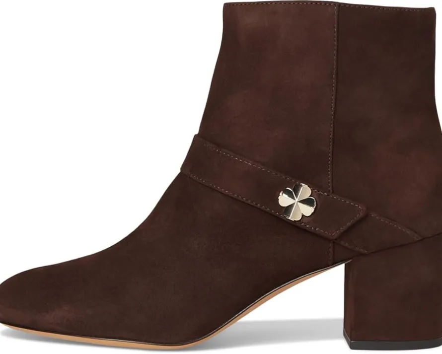 - The art of chic: The Kate Spade New York® Spade Flower Suede Ankle Bootie blends timeless elegance with a playful, modern twist. Crafted with a luxuriously soft suede upper, this mid-top bootie is designed to elevate any outfit, from casual denim days to polished evening looks. The signature Spade Flower detail adds a playful yet refined touch, while the block heel delivers both height and stability for all-day comfort. A smooth cotton lining and premium leather insole ensure a breathable, cushioned feel, while the durable leather outsole offers lasting wear. The sleek zippered side closure makes slipping in and out effortless, giving you style and convenience in one perfect package.